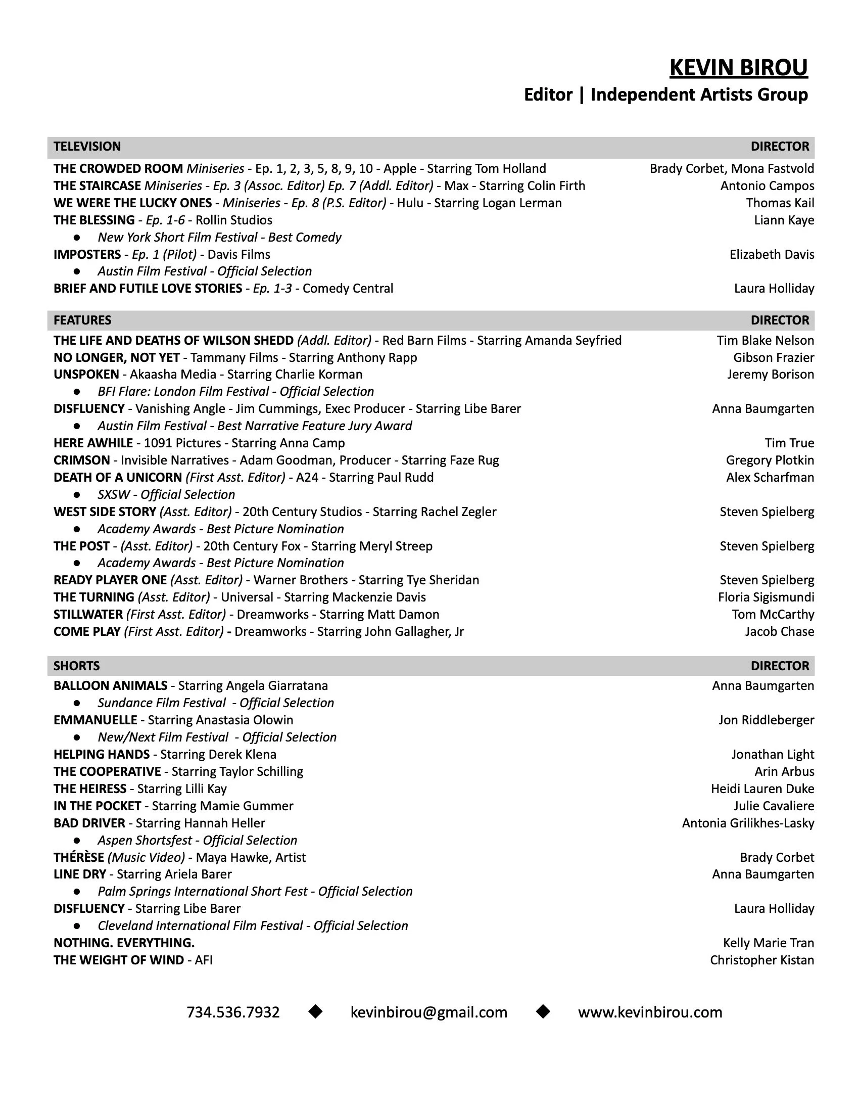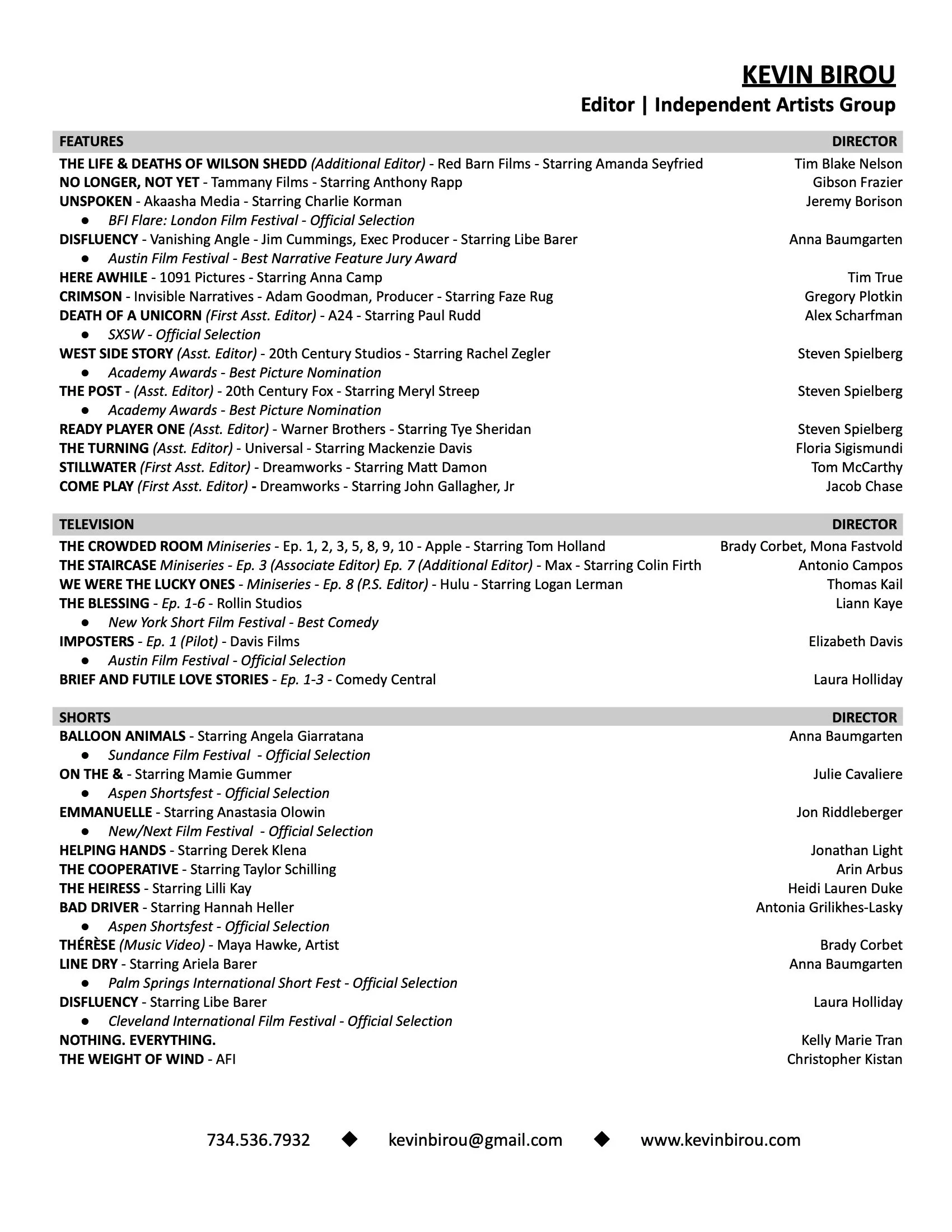 Kevin Birou - Film Editor
